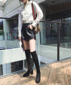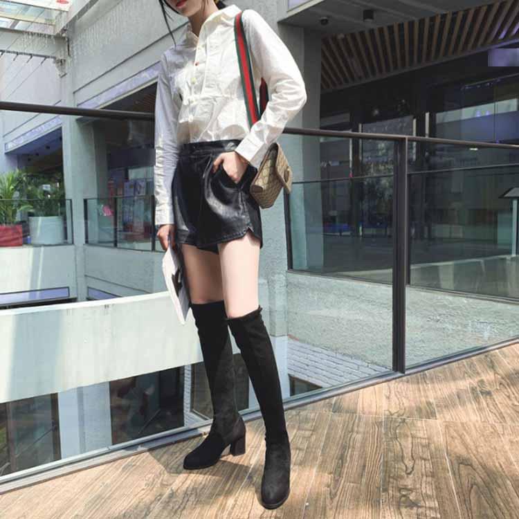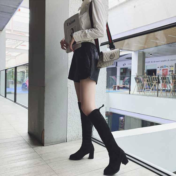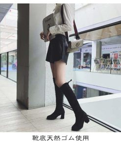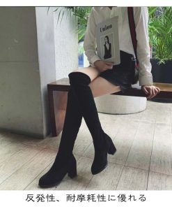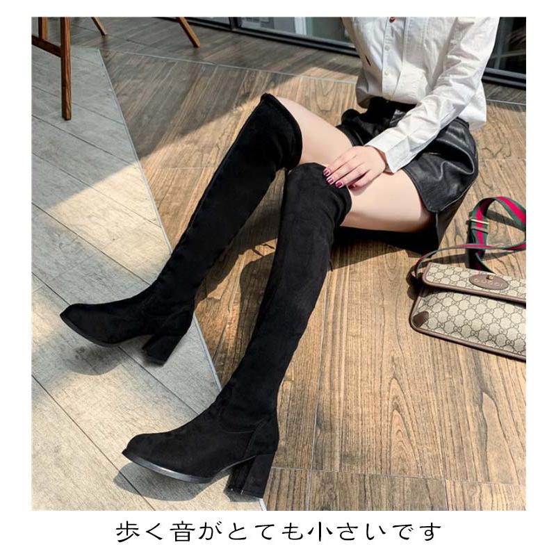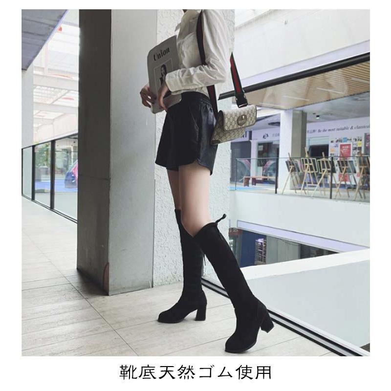 合成皮革 美脚 可愛い スムース 太ヒール 痛くない 冬 ロングブーツ 疲れにくい ニーハイブーツ 細見せ ローヒール 楽