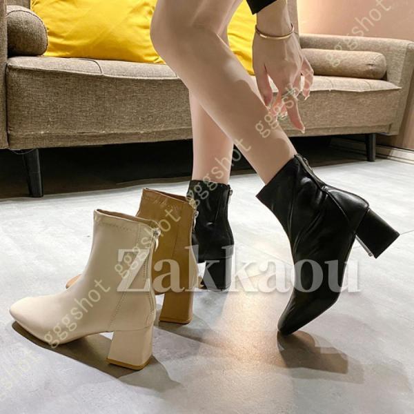 大きいサイズ ショートブーツ バックジッパー レディース ハイヒール 秋冬ブーツ ハロウィン 入学式 卒業式 袴 ブーツ 太めヒール 歩きやすい