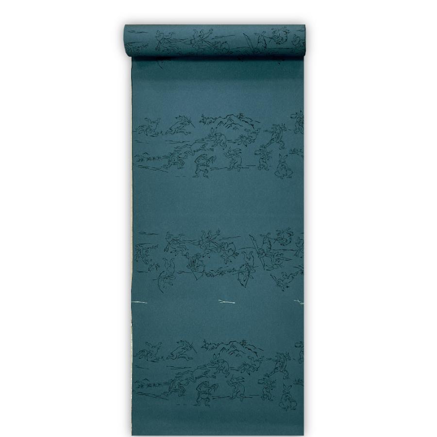 メンズ仕立ても可能な キングサイズの、ユーモラスな鳥獣戯画デザインの反物です。小紋や紬など、カジュアル着物の長襦袢におすすめです。ご自宅の洗濯機で丸洗いOKの、最高級シルキー素材です。