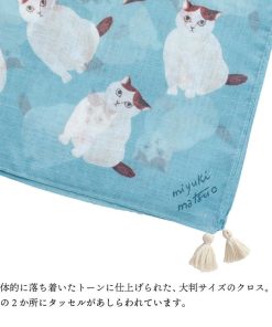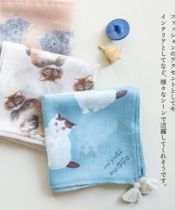 Matsuo Miyuki m.m マツオミユキ レディース スカーフ フリンジ マルチクロス 大判 ハンカチ 弁当包み 大きめ 60×60センチ 猫 ねこ 正方形 ふんわり かわいい おしゃれ 人気 プレゼント
