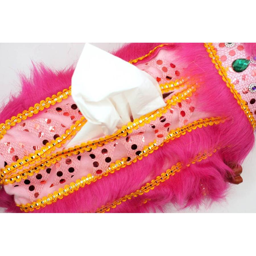横浜中華街 獅子舞 ティッシュケース カバー 桃色 221XL004-pk