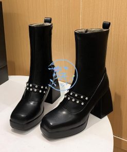 秋冬ブーティーレディース ショートブーツ白黒 厚底 9cmヒール太めヒールブーティー 靴ショートブーツ大きいサイズパンプス歩きやすいショートブーツ内ボア