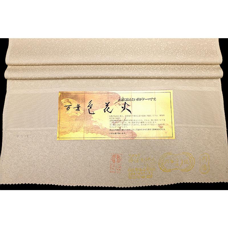 色無地 正絹 反物 万葉色花火 薄茶 ベージュ サンドベージュ 薄 淡 枯色 花唐草 最丹後ちりめん 未仕立て フォーマル 礼装用 結 No.4-0487