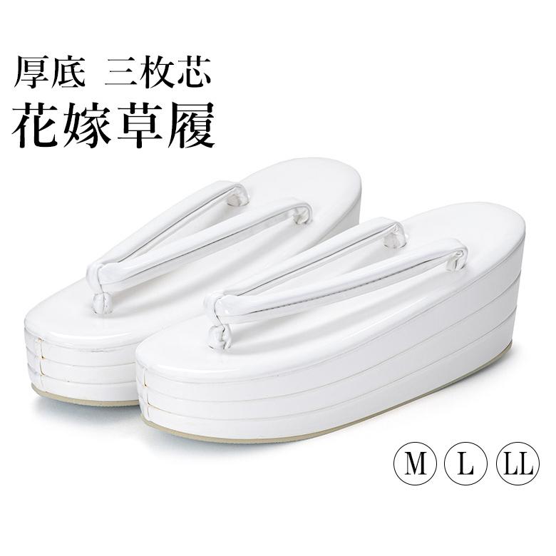 草履 花嫁 婚礼用 白 厚底 三段 三枚芯 M L LL 打掛 白無垢 掛下 和装婚 結婚式 ブライダル ウエディング