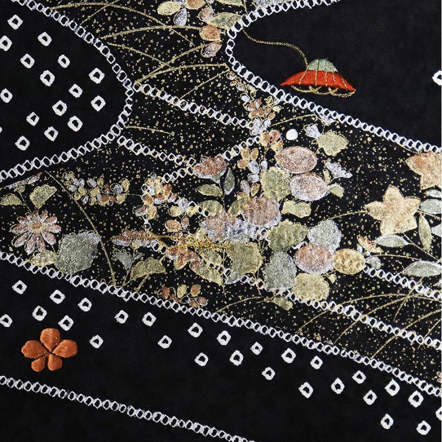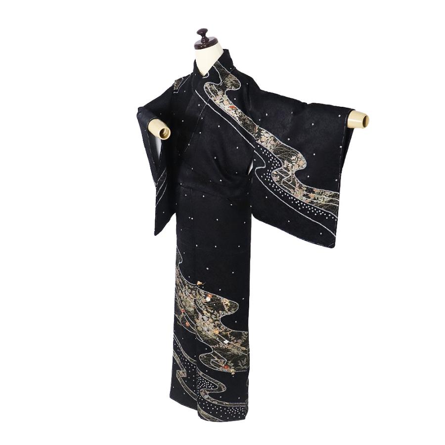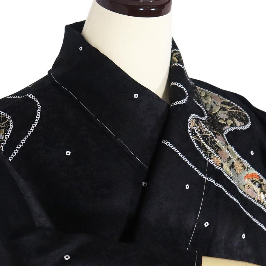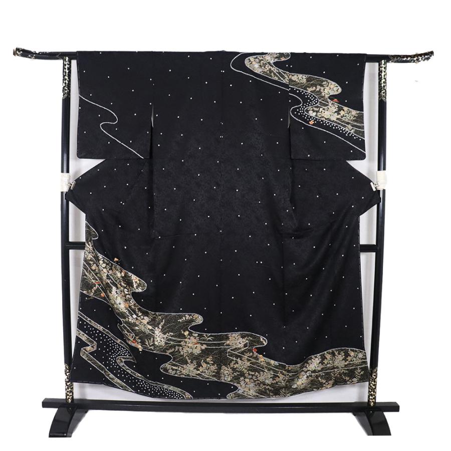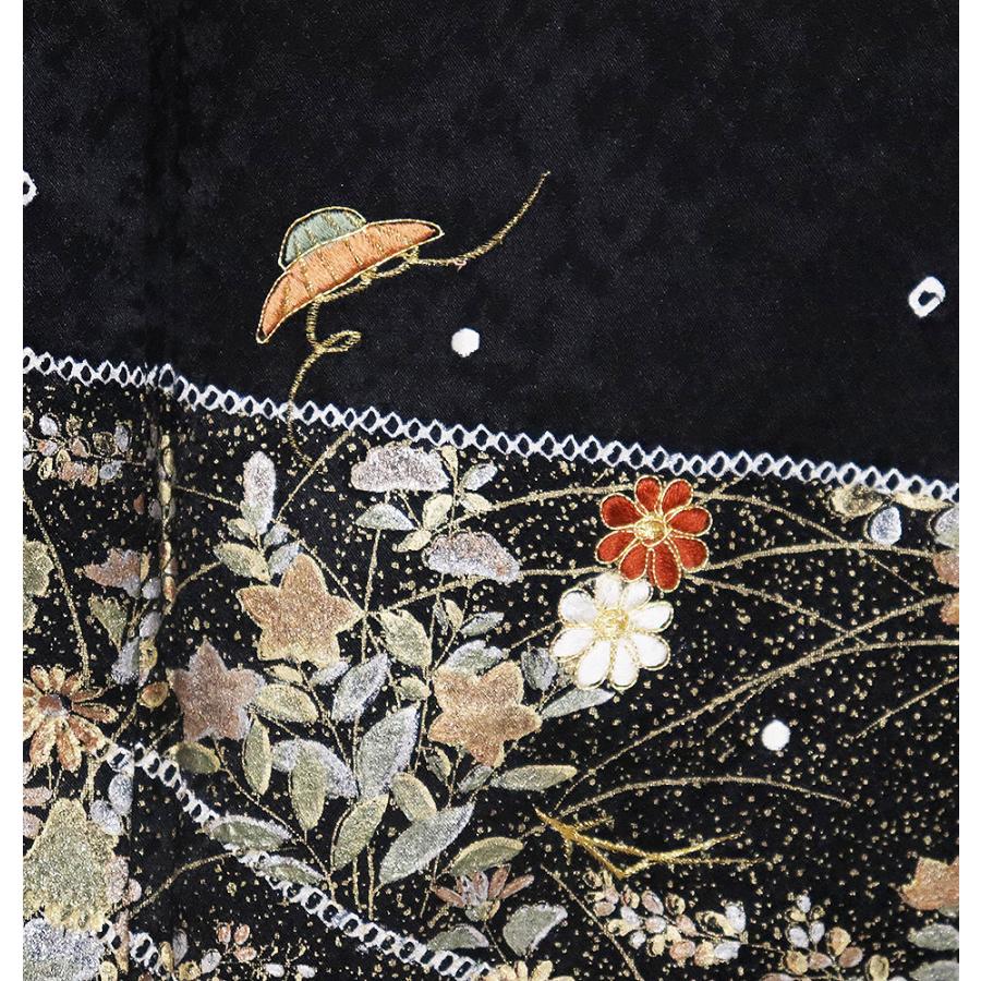 訪問着 袷 正絹 黒 刺繍 菊 梅 宝尽くし 金箔 桔梗 南天 絞り 鹿の子 流水 Sサイズ ki30959 美品 フォーマル 30代 40代 50代 送料込み
