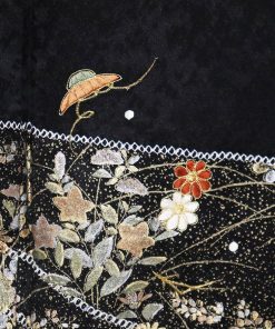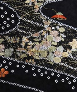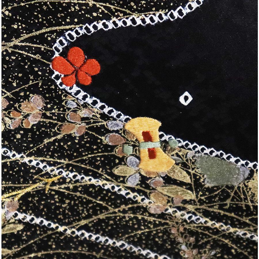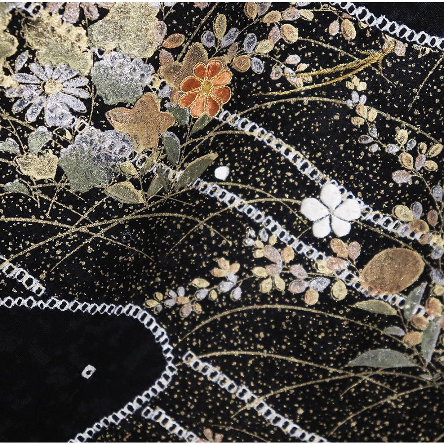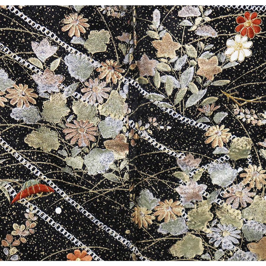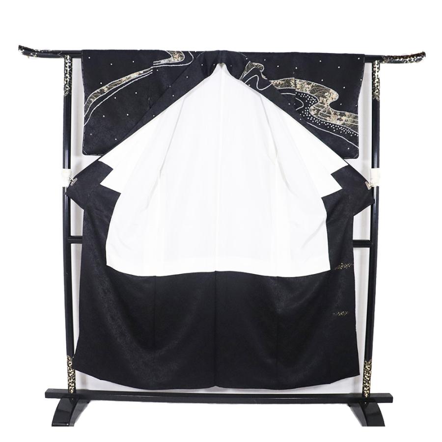 訪問着 袷 正絹 黒 刺繍 菊 梅 宝尽くし 金箔 桔梗 南天 絞り 鹿の子 流水 Sサイズ ki30959 美品 フォーマル 30代 40代 50代 送料込み