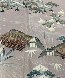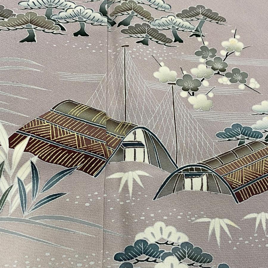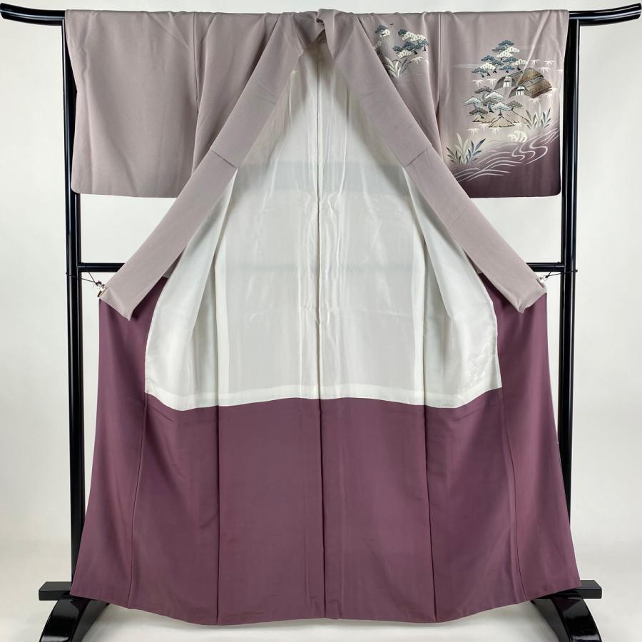 訪問着 身丈162cm 裄丈66cm M 袷 松竹梅 網干 ぼかし 金彩 灰紫 正絹 秀品 一つ紋 中古