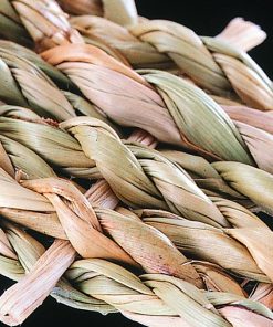 自然草をひも状の縄に仕上げ、それをタタミ風に織り上げました。