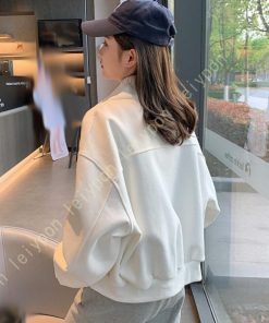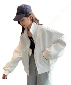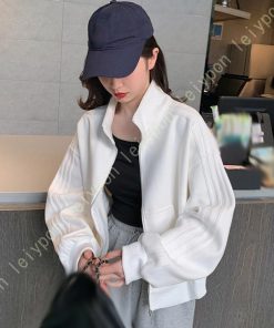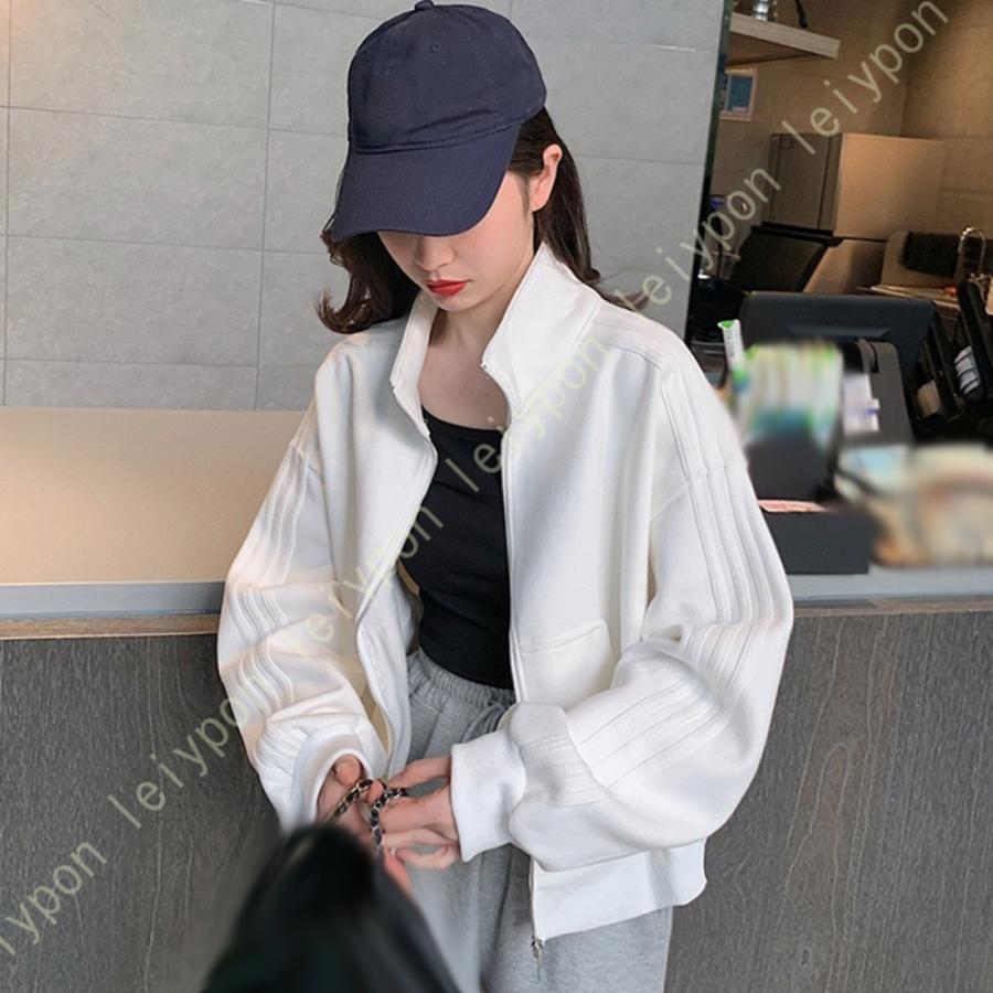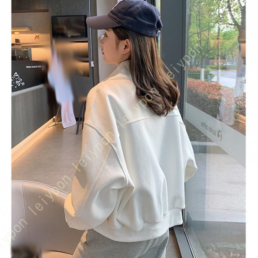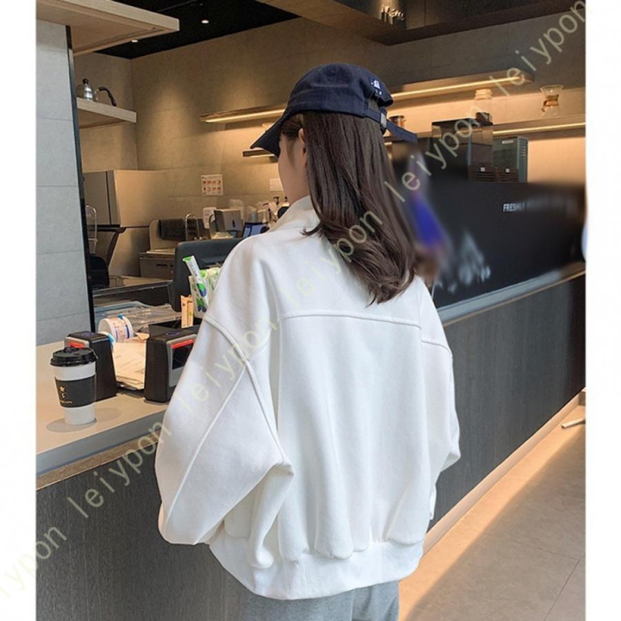長袖 ブルゾン ジャンパー レディース 秋物 ジャケット ショート丈 無地 かわいい スタジャン 野球服 ゆったり シンプル きれいめ 通勤 通学 清々しい