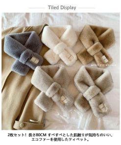 2点セット ファーマフラー フェイクファー レディース ティペット ネックウォーマー エコファー 差し込みマフラー ふわふわ もこもこ ボア かわいい