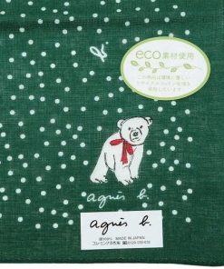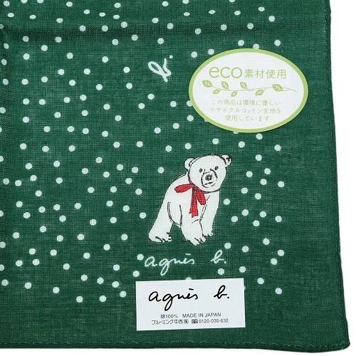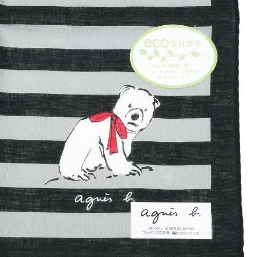 agnes b. 新古品 アニエスベー ハンカチ 2枚セット ブランド ラッピング無料 日本製 ポーラーベア コットン 黒×緑 1505BE 送料無料