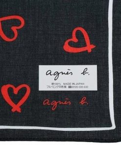 agnes b. 新古品 アニエスベー ハンカチ 2枚セット ブランド ラッピング無料 日本製 ポーラーベア / ハート プリント コットン 赤×黒 1505BE 送料無料