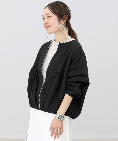 キーワード:ブルゾン アウター レディース ジップ ショート丈 無地