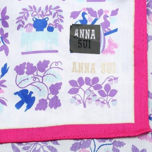 ANNA SUI アナスイ ハンカチ 2枚セット レディース ラッピング無料 日本製 フラワー&バタフライ / ボタニカル柄 コットン 青×紫 100524 送料無料