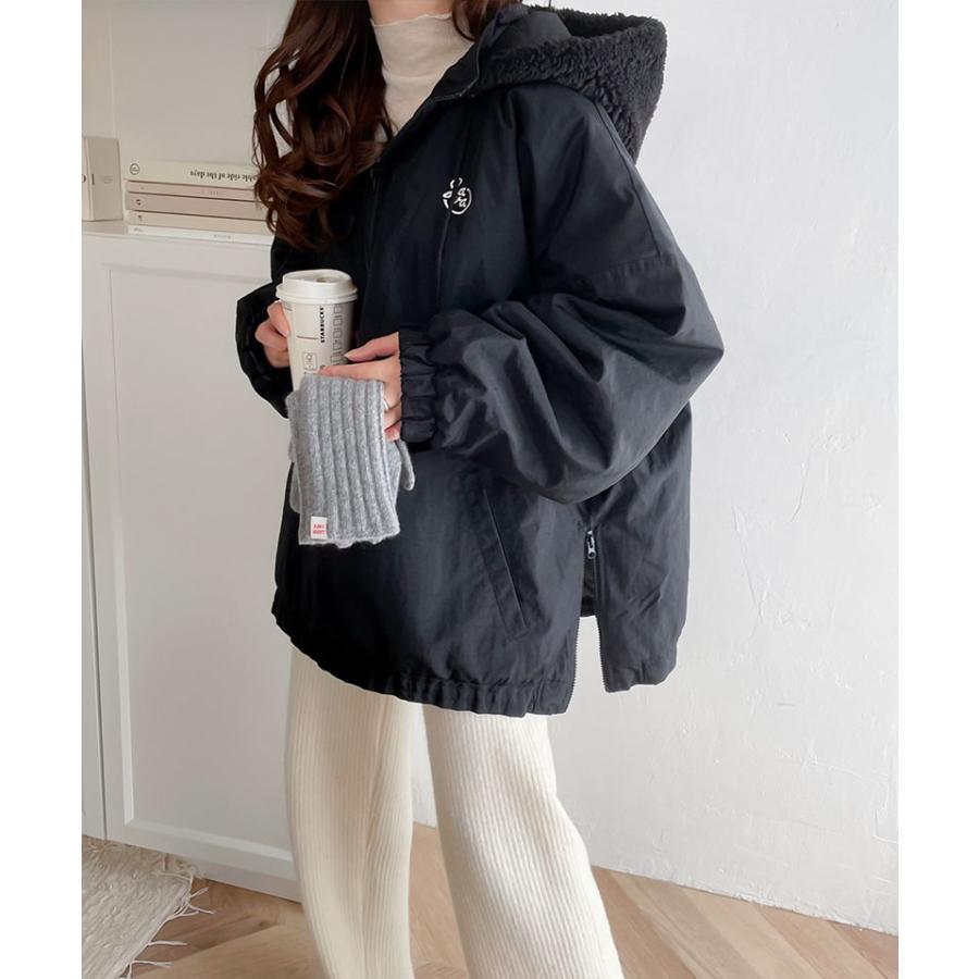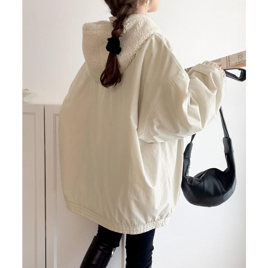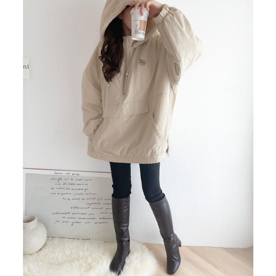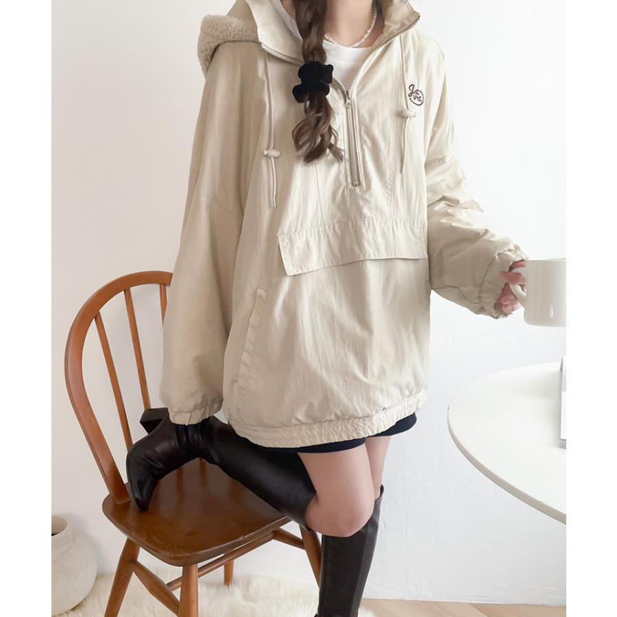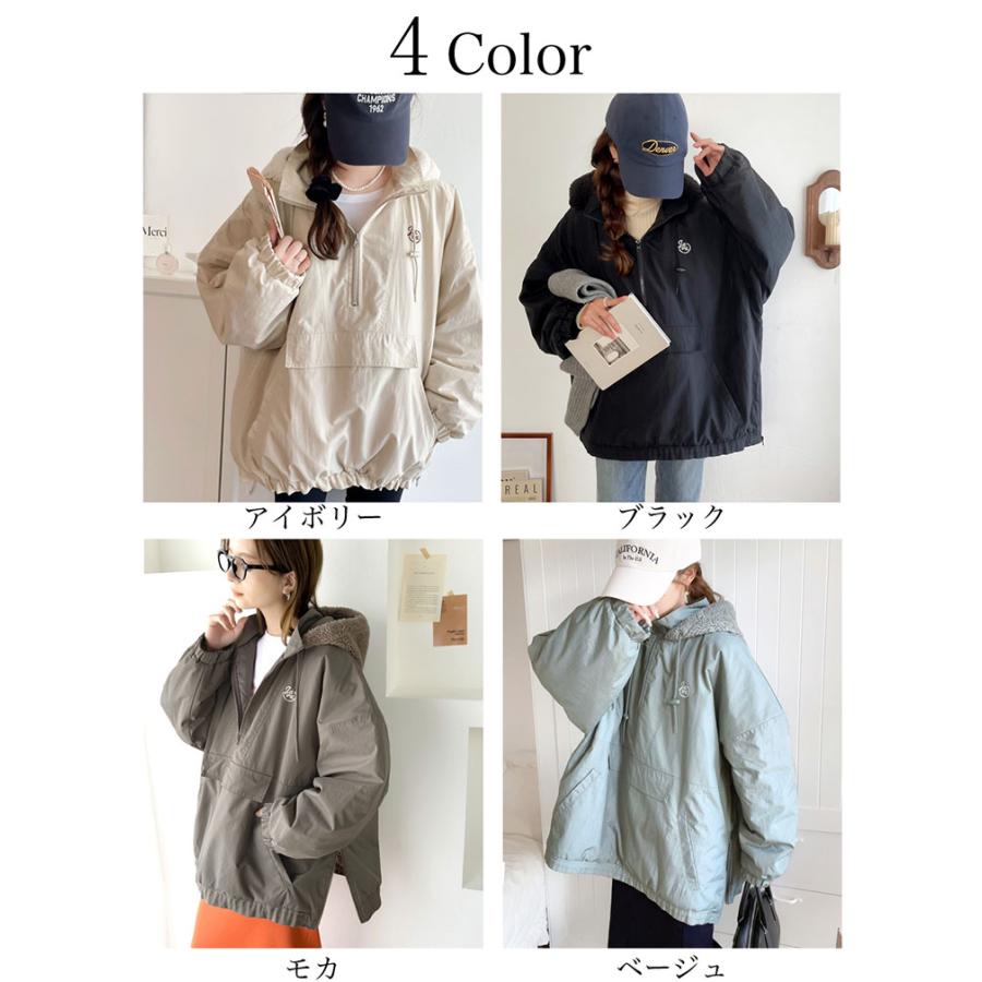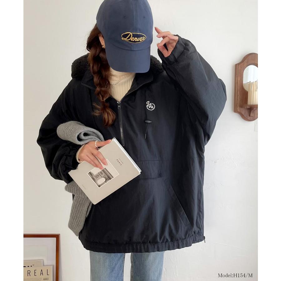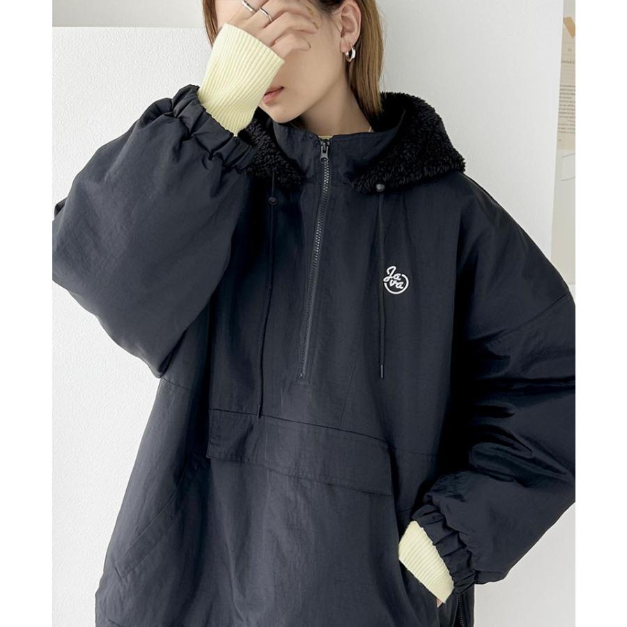 classicalelf 《javaジャバコラボ》 トップス ハーフジップ レディース プルオーバー フード ボア 中綿 キルティング ナイロンワッシャー加工 刺繍