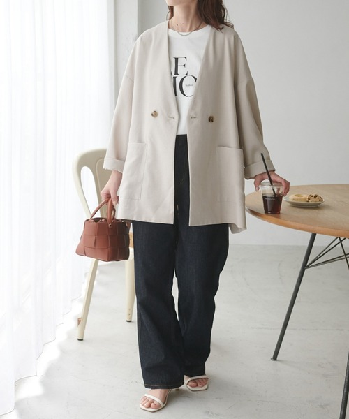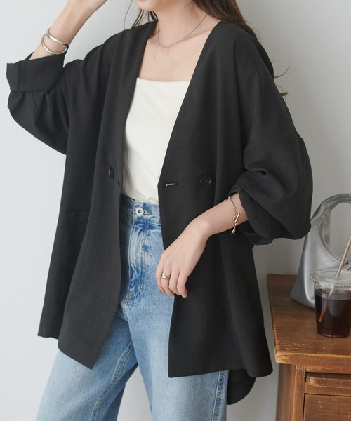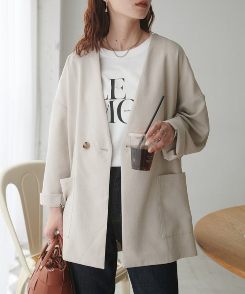 キーワード:ジャケット ノーカラージャケット レディース 無地