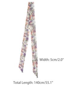 Elerevyo スカーフ 女性 花柄シフォンスカーフ スクエアネックスカーフ ロングリボン ロングホワイト1 140x5cm(LxW)