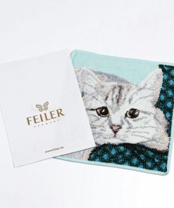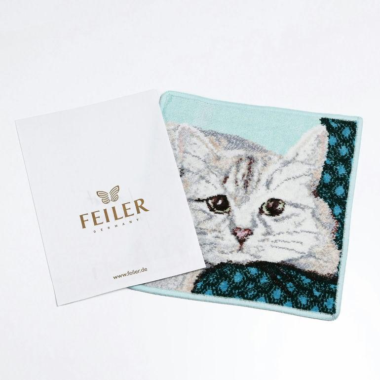 feiler 並行輸入品 フェイラー ハンカチ ハンドタオル タオルハンカチ 25cm 日本未発売 ホワイトキャット 白猫 シロネコ 名入れ可有料