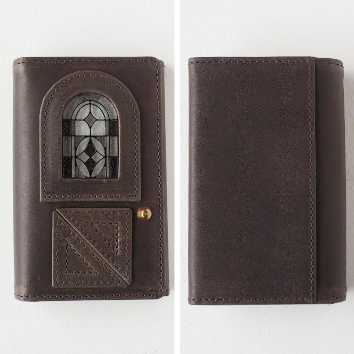 glart (グラート) ステンドグラス アンティークドア 名刺入れ モノクローム レディース / リアルガラス 本革 革財布 ブランド カードケース waji ビジネス 牛革