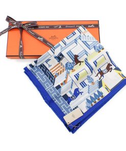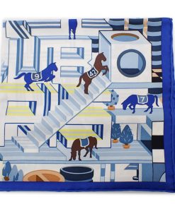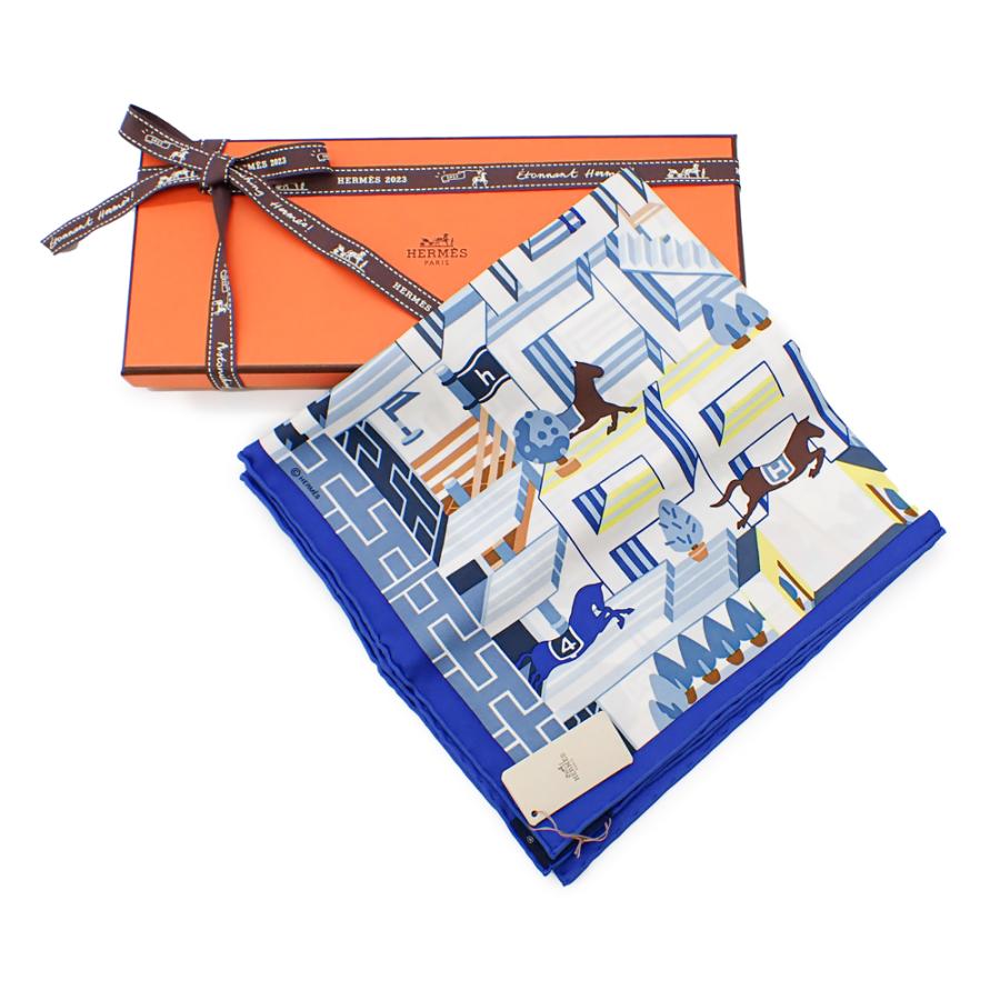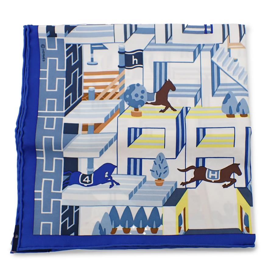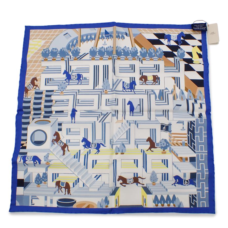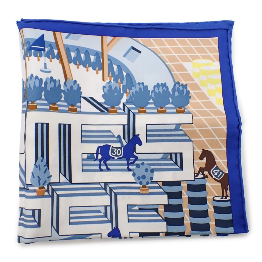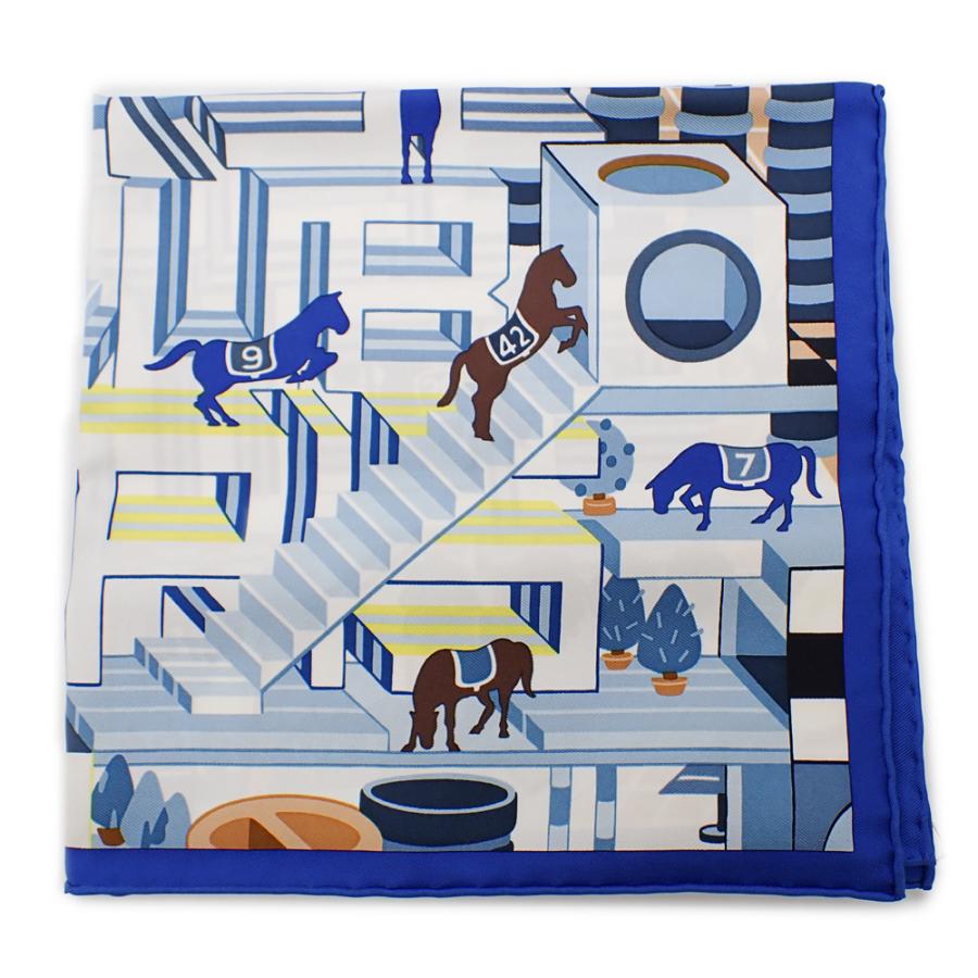 HERMES 新品 エルメス カレ45 ガヴロッシュ ブルー ホースクラブ・デタイユ スカーフ シルク