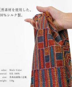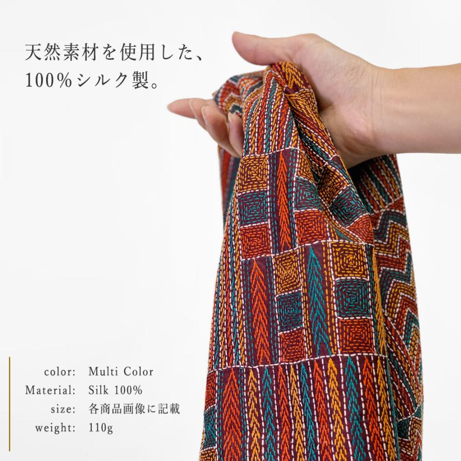 InDream カンタ刺繍ストール 50×200cm 刺し子 スカーフ ピンク オレンジ シルク クリスマス ギフト 誕生日 プレゼント 50代 60代 70代
