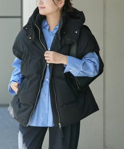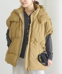 キーワード:ダウンベスト ベスト レディース ナイロン フード 無地