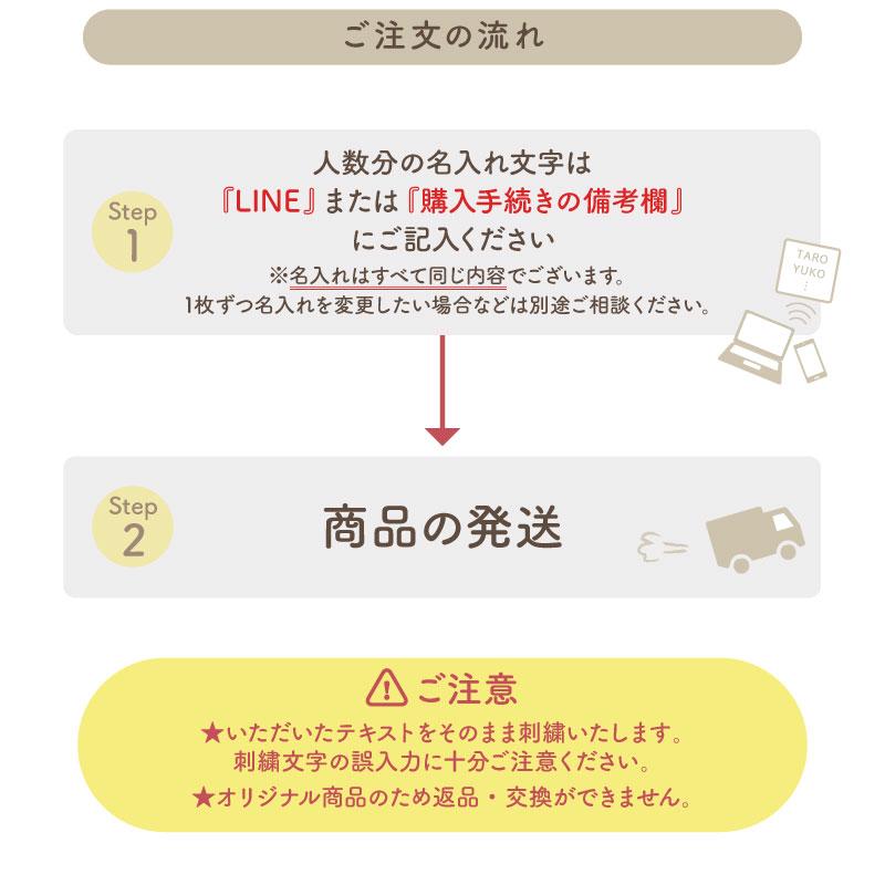 15文字以内でご希望に合わせた名入れを刺繍いたします。