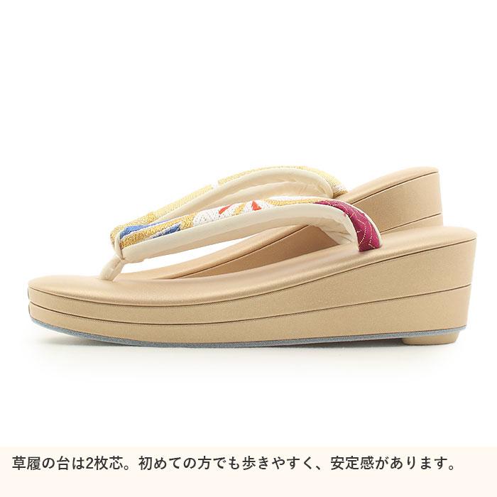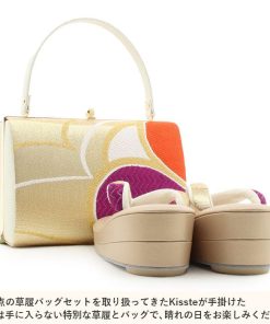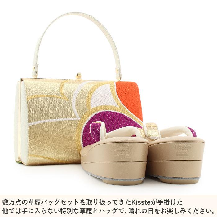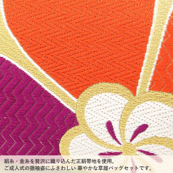 Kisste 草履バッグセット 成人式 振袖用 成人用 白梅謹製 M オレンジ 紫 金 梅 華紋 正絹帯地 2枚芯 日本製 POINT
