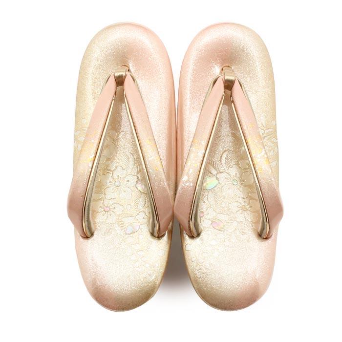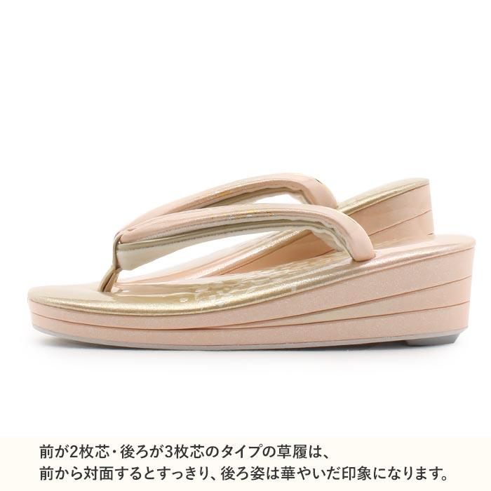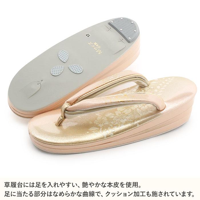 Kisste 草履 留袖 訪問着 礼装用 レディース M 桃 金 本革 本皮 型押し 螺鈿細工 辻が花 日本製 二石花緒 優花緒 SALE