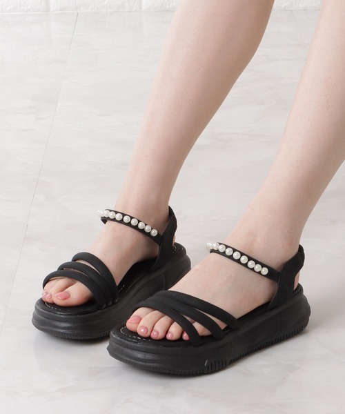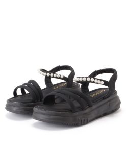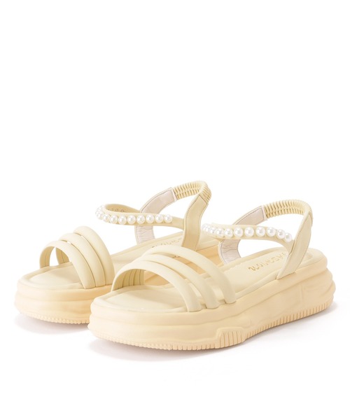 Lace Ladies サンダル パール付き三連ストラップコンフォートサンダル レディース