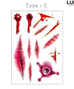 血のりや傷跡など5種類から選べる特殊メイクタトゥーシール。