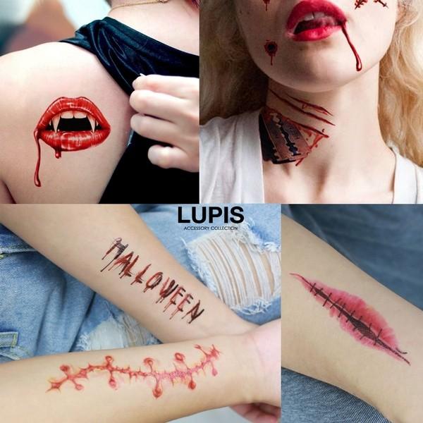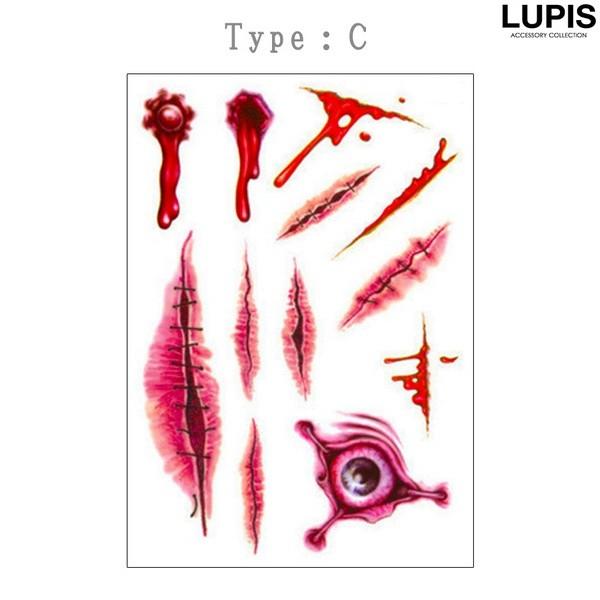 LUPIS タトゥーシール ボディーシール ハロウィン 傷 傷口 血 リップ 唇 イニシャル 弾痕 レッド ルピス lupis