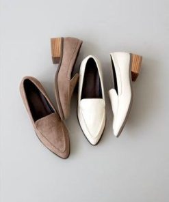 menue メヌエ Menue アーモンドトゥスタックヒールローファー (3034グレージュSD)