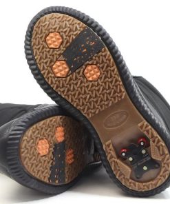 内側は防寒生地であたたかく、接地面から3cm×3時間の耐水仕様、またソールにはガラス繊維とNZ意匠ラバー、更に折りたたみ式のWグリップスパイクを搭載し、凍結路面でも歩きやすい防滑底となっております。