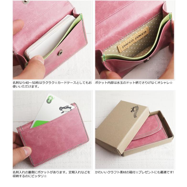 pacca 名刺入れ レディース 革 本革 日本製 馬革 カードケース 軽量 軽い 抗菌防カビ加工 除菌加工サービス
