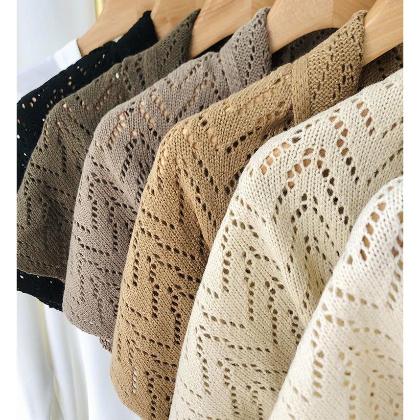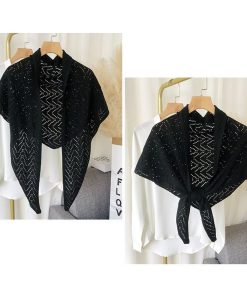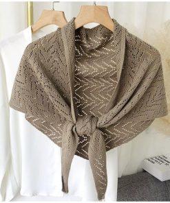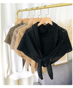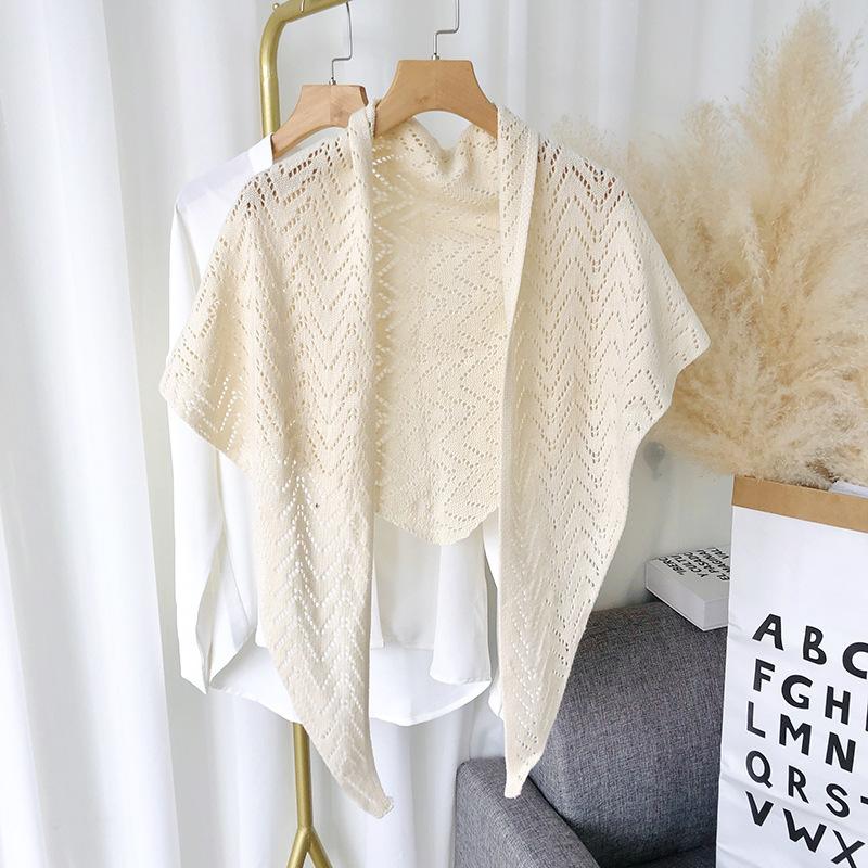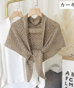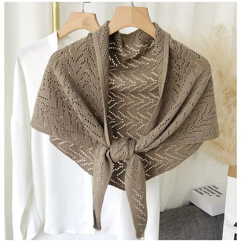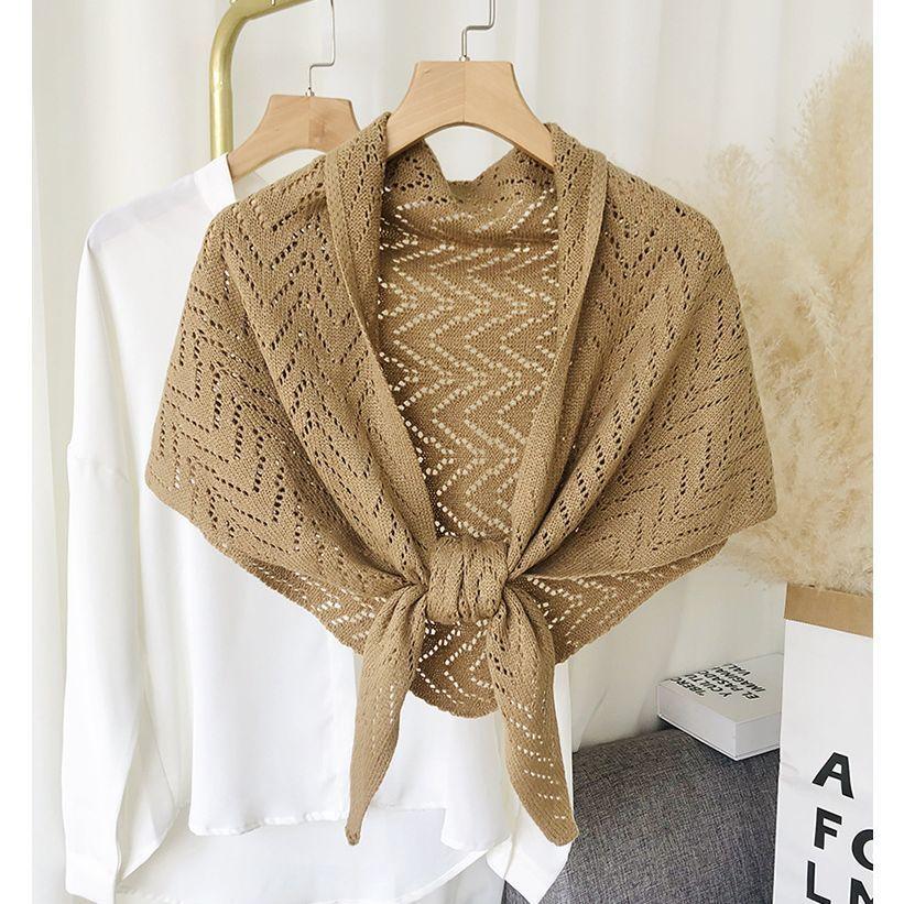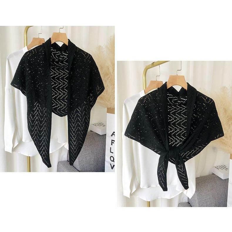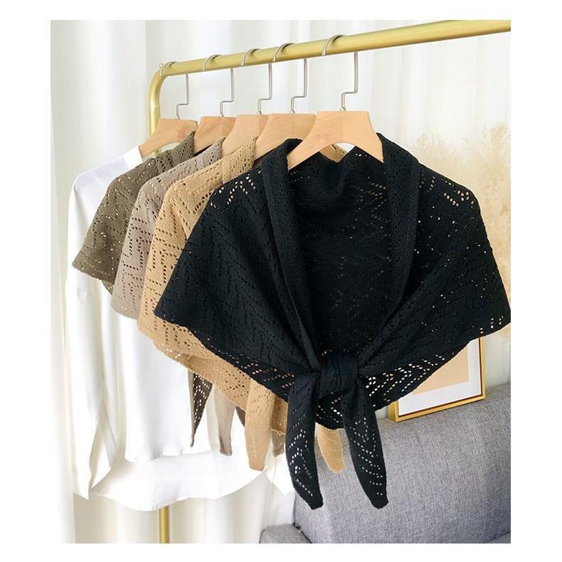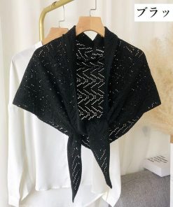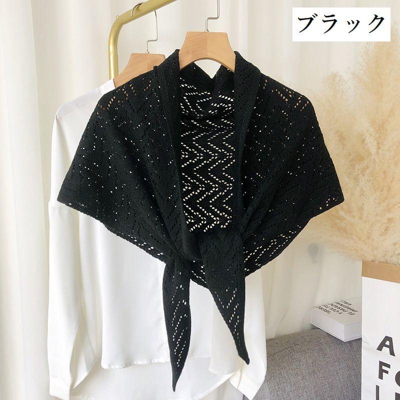 plusnao ストール ショール レディース 羽織り 肩掛け 透かし編み 三角 無地 ソリッドカラー 冷え対策 前結び 女性用 婦人用 ファッション雑貨 大人可愛い