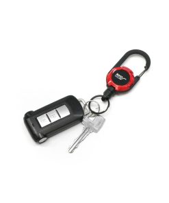 マグネットを内蔵したカラビナ付きコードリールキーホルダーです。