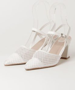 参考商品名:ポインテッドトゥチュールメッシュストラップパンプス